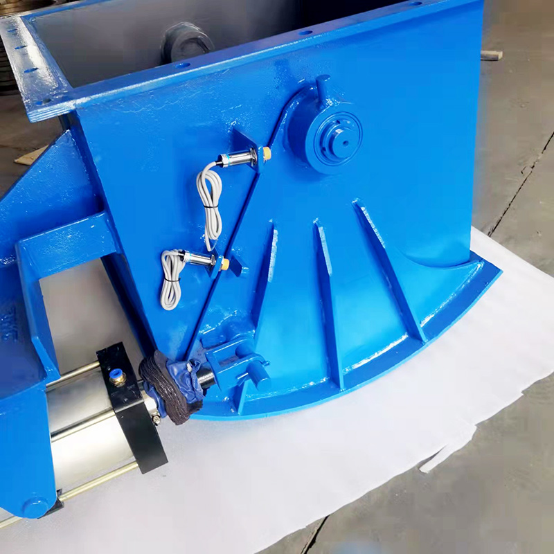 腭式閘門由本體、扇形閘板、軸、齒輪、密封件、執(zhí)行機構(gòu)等部件構(gòu)成。采用碳鋼焊接成形,結(jié)構(gòu)獨特,運行靈活可靠,無卡阻現(xiàn)象。配用不同的傳動裝置能滿足不同的工況需要。電動式閘門采用帶有超載保護(hù)裝置的電動推桿,可避免燒壞電機,可以遠(yuǎn)距離操縱或程序控制,往復(fù)行程可以調(diào)節(jié)位置自鎖。電液動式閘門采用電液推桿,全液壓傳動,推拉力均可實現(xiàn)無級調(diào)速。氣動式閘門采用氣動推桿,通過配件組合可以遠(yuǎn)距離操縱或現(xiàn)場控制。